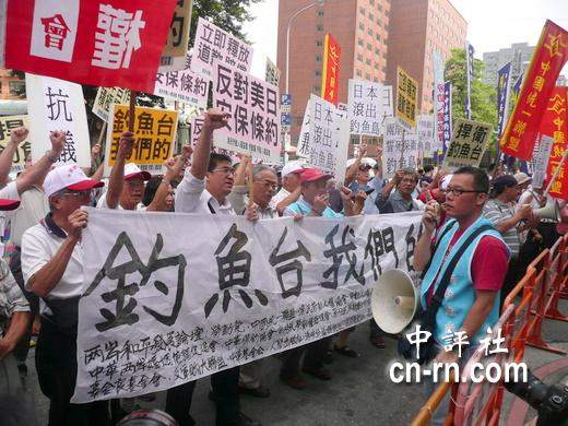 據(jù)中評(píng)社報(bào)道,兩岸和平發(fā)展論壇與中華保釣協(xié)會(huì)等團(tuán)體今天上午號(hào)召百余人赴日本在臺(tái)交流協(xié)會(huì)抗議,他們喊口號(hào)要求日本政府“道歉、放人、賠償”,并且當(dāng)場焚燒日本國旗,丟魚泄恨。