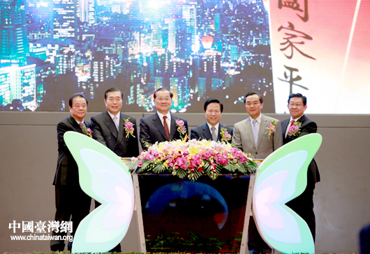 “江蘇臺(tái)灣周暨2010(南京)臺(tái)灣名品交易會(huì)開(kāi)幕式”今天上午在南京國(guó)際博覽中心舉行。江蘇省委書(shū)記梁保華,中共中央臺(tái)辦、國(guó)務(wù)院臺(tái)辦主任王毅,中國(guó)國(guó)民黨榮譽(yù)主席連戰(zhàn)等共同按下啟動(dòng)按鈕,啟動(dòng)2010“江蘇臺(tái)灣周”。(中國(guó)臺(tái)灣網(wǎng) 鐘寶華 攝)