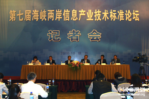 第七屆海峽兩岸信息產(chǎn)業(yè)技術(shù)標(biāo)準(zhǔn)論壇記者招待會。(中國臺灣網(wǎng)董潔攝)