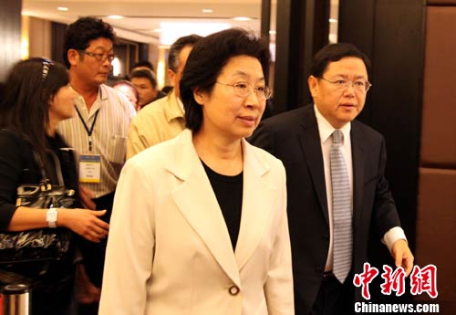 10月27日,大陸海協(xié)會(huì)副秘書長張勝林等中午抵達(dá)臺(tái)灣,了解在臺(tái)灣蘇花公路失蹤的20名大陸同胞的搜救進(jìn)展情況。圖為張勝林等傍晚在;鶗(huì)人員陪同下到臺(tái)北縣福榮大飯店看望失蹤的大陸游客家屬。 中新社記者 陳立宇 攝