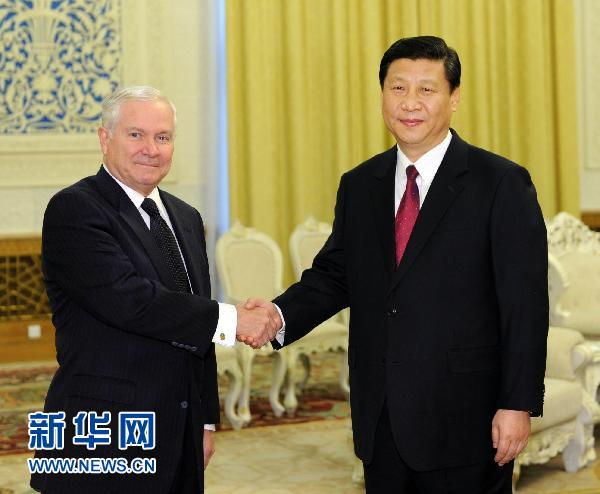 國家副主席、中央軍委副主席習(xí)近平10日下午在人民大會堂會見了來訪的美國國防部長羅伯特·蓋茨一行。
