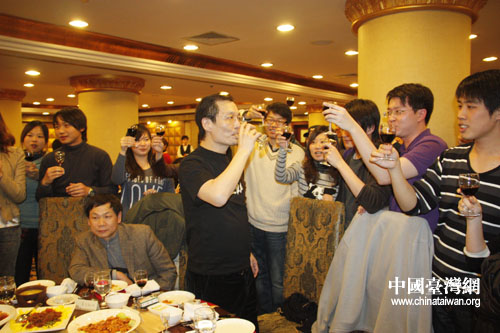 臺生和閆會長把酒言歡。(中國臺灣網(wǎng)栗琰攝)