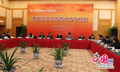 第三屆兩岸青年學(xué)者論壇3月23日在京舉行,論壇主題為“兩岸持續(xù)合作的動力與機(jī)制”。主辦方全國臺灣研究會邀請了來自清華大學(xué)、廈門大學(xué)以及臺北大學(xué)等兩岸高校等相關(guān)研究機(jī)構(gòu)的三十余位青年學(xué)者,就影響兩岸持續(xù)合作的內(nèi)外因素、動力、機(jī)制、趨勢等議題進(jìn)行了廣泛研討。全國臺灣研究會執(zhí)行副會長兼秘書長周志懷出席論壇并致開幕辭。(記者 許玉燕)