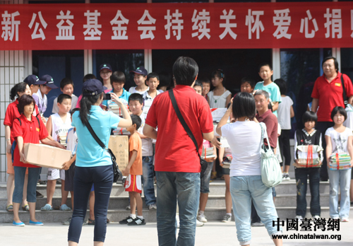 頂新公益基金會“持續(xù)關懷”愛心捐贈圖書儀式8月19日上午在天津薊縣下營鎮(zhèn)中營小學舉行。(中國臺灣網(wǎng) 王怡然 攝)