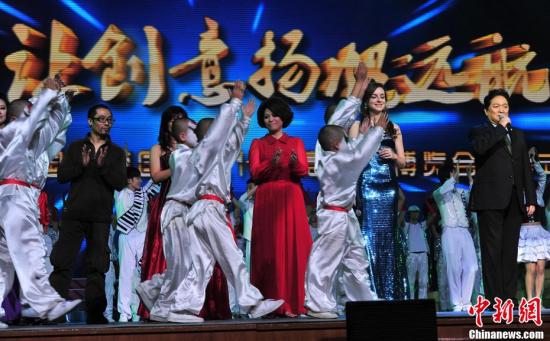 11月9日晚,臺(tái)灣歌手蔡琴(中)出席了在北京人民大會(huì)堂舉行的第六屆中國(guó)北京國(guó)際文化創(chuàng)意產(chǎn)業(yè)博覽會(huì)開(kāi)幕式文藝晚會(huì)演出,并演唱了《時(shí)光》和《你的眼神》等兩首經(jīng)典歌曲。 中新社發(fā) 鄒憲 攝
