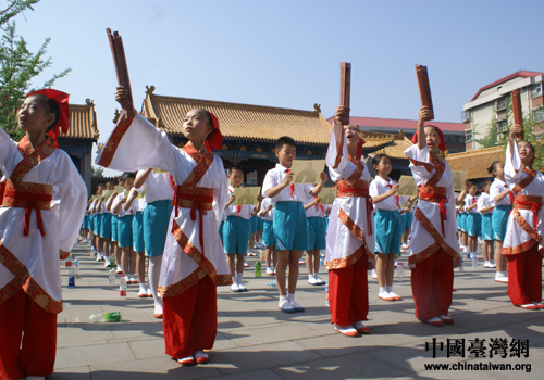 中國臺(tái)灣網(wǎng)5月28日濟(jì)南消息 5月27日上午,由濟(jì)南市政府、臺(tái)中市政府、山東省臺(tái)辦、國臺(tái)辦《兩岸關(guān)系》雜志社、中國孔子基金會(huì)和臺(tái)灣中華華夏文化交流協(xié)會(huì)共同主辦的“和諧中華·第三屆海峽兩岸經(jīng)典文化推廣會(huì)演”在濟(jì)南市、臺(tái)中市、廈門市及香港、澳門等地同時(shí)開幕。海峽兩岸數(shù)萬名青少年同聲誦讀中華經(jīng)典,盛況空前。
