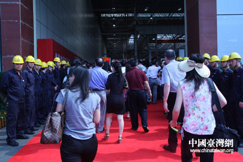 中國(guó)和平統(tǒng)一促進(jìn)會(huì)考察團(tuán)進(jìn)入三一重工集團(tuán)的生產(chǎn)車間。(中國(guó)臺(tái)灣網(wǎng) 王君飛 攝)