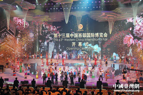 第十三屆西博會(huì)25日晚在成都隆重開(kāi)幕,中共中央政治局常委、全國(guó)人大常委會(huì)委員長(zhǎng)吳邦國(guó)出席開(kāi)幕式。(圖片來(lái)源:四川省臺(tái)辦)