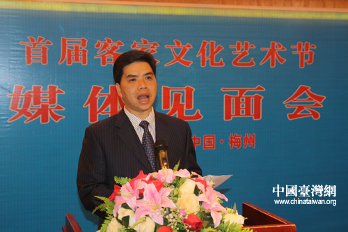 11月22日,梅州市舉辦媒體見面會,梅州市副市長李遠青宣布首屆世界客家文化藝術節(jié)將于明天開幕(中國臺灣網(wǎng)記者 蕪同 攝)