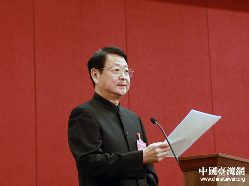 汪毅夫在第九次全國臺灣同胞代表會議上當選為全國臺聯(lián)會長。20日上午,汪毅夫在閉幕會上講話。(中國臺灣網 楊麗 攝)