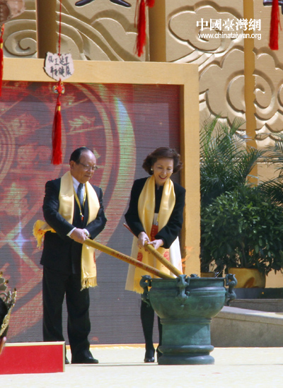 中國(guó)國(guó)民黨副主席蔣孝嚴(yán)及夫人蔣黃美倫首次受邀參加黃帝故里拜祖大典,他們?cè)诙Y儀小姐的引導(dǎo)下走上拜祖臺(tái),凈手敬香。(中國(guó)臺(tái)灣網(wǎng) 普燕攝)