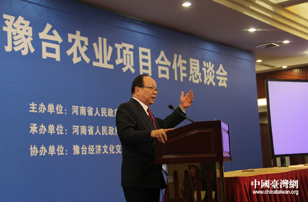 12日下午,2013年豫臺農(nóng)業(yè)合作項目懇談會在河南鄭州舉行。中國國民黨副主席蔣孝嚴在致辭時表示,兩岸和平發(fā)展的關(guān)系不可逆轉(zhuǎn)性,要持續(xù)、穩(wěn)健、堅定不移地推動兩岸和平發(fā)展。(中國臺灣網(wǎng) 普燕攝)