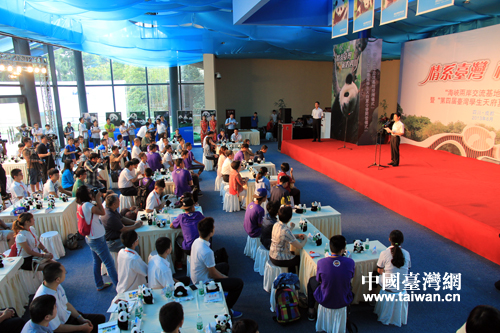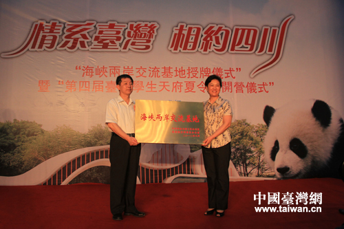 中國臺灣網(wǎng)8月8日成都消息 今日上午,“海峽兩岸交流基地”授牌儀式在成都大熊貓繁育基地正式舉行。中央臺辦、國臺辦副主任葉克冬,四川省委副書記柯尊平,四川省人民政府副省長黃彥蓉等出席。包括參加第四屆臺灣學(xué)生天府夏令營活動的川臺兩地師生在內(nèi),共130余人參加了授牌儀式。