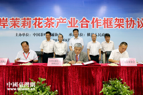 中國(guó)臺(tái)灣網(wǎng)8月27日橫縣消息 日前,海峽兩岸茉莉花茶產(chǎn)業(yè)合作框架協(xié)議在廣西橫縣簽約。廣西茶葉協(xié)會(huì)、橫縣花茶協(xié)會(huì)與臺(tái)灣區(qū)制茶工業(yè)同業(yè)公會(huì)共同簽訂海峽兩岸茉莉花茶產(chǎn)業(yè)合作框架協(xié)議,雙方將加強(qiáng)溝通合作,攜手拓展茉莉花茶市場(chǎng)。