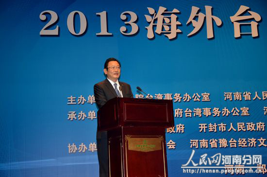 9月12日上午,“2013海外臺商中原行”活動開幕式在鄭州舉行。世界臺商總會總會長李芳信、wintelLTDA董事長葉慶和、僑商鞋業(yè)總經(jīng)理賴建中、東隆進出口貿(mào)易公司董事長張志康等海外知名臺商,河南省房地產(chǎn)業(yè)商會副會長兼秘書長趙進京,鄭州臺資企業(yè)協(xié)會會長、丹尼斯百貨有限公司董事長王尚卿,鄭州臺資企業(yè)協(xié)會副會長、晶誠科技有限公司董事長陳澤亞等省內(nèi)企業(yè)家和在豫臺商近200人參加了開幕式。開幕式由省政府副秘書長劉世偉主持,副省長趙建才出席開幕式并致歡迎辭,國臺辦主任助理龍明彪在開幕式上致辭。