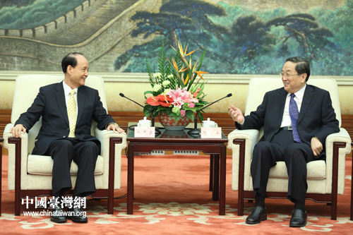 9月12日,全國政協(xié)主席俞正聲在北京人民大會堂會見臺灣海基會董事長林中森帶領(lǐng)的;鶗O(jiān)事參訪團(tuán)一行。(中國臺灣網(wǎng) 陳佳慧 攝)
