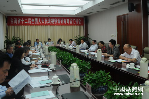 臺灣省十二屆全國人大代表到海南開展調(diào)研,圖為報告會。