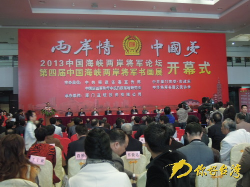 29日上午,以“兩岸情中國夢”為主題的“2013中國(廈門)海峽兩岸將軍論壇”暨“第四屆中國海峽兩岸將軍書畫展”在廈門文化藝術(shù)中心博物館開幕。書畫展得到海內(nèi)外藝術(shù)家的熱情支持,參展書畫作品共600多幅,是一次以兩岸將軍書畫作品為主題,海內(nèi)外名家傾情參與、百花齊放的文化盛宴。