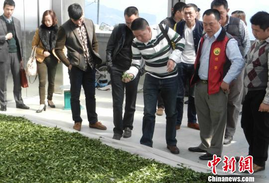 5日,來自大陸的30多名茶農(nóng)茶商赴阿里山參觀茶園茶廠,學習茶園管理、制茶工藝技術,尋找兩岸合作商機。阿里山茶葉生產(chǎn)合作社理事主席林育丞介紹,他們種植的阿里山茶海拔高度在900米至1700米之間,合作社下設茶葉產(chǎn)銷班,輔助茶農(nóng)種茶、做茶、賣茶。