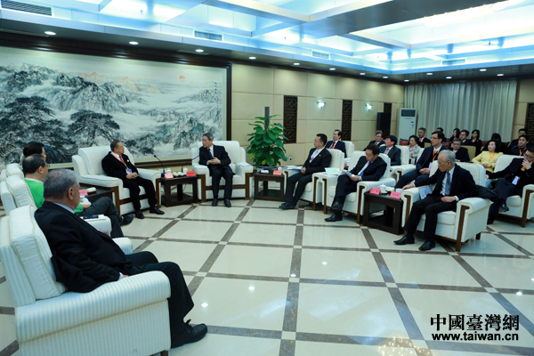 張志軍會(huì)見(jiàn)第四屆ECFA海峽兩岸暨香港民間經(jīng)貿(mào)合作論壇代表。(中國(guó)臺(tái)灣網(wǎng) 于斯文 攝)