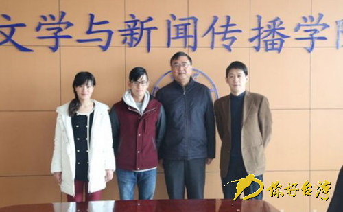山東大學文學與新聞傳播學院領導與臺灣學生黃瑋(你好臺灣網(wǎng) 圖)