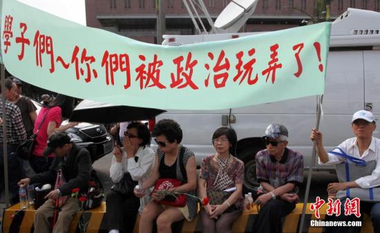 3月30日,反服貿(mào)群體在馬英九辦公樓附近的臺北凱道游行。同日,反“反服貿(mào)”游行也登場。