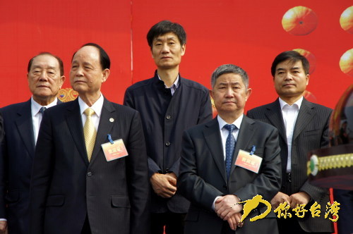 山東省副省長(zhǎng)趙潤(rùn)田在壽光親切會(huì)見(jiàn)林中森董事長(zhǎng)、馬紹章副董事長(zhǎng)并一起出席菜博會(huì)開(kāi)幕式。(你好臺(tái)灣網(wǎng) 圖)