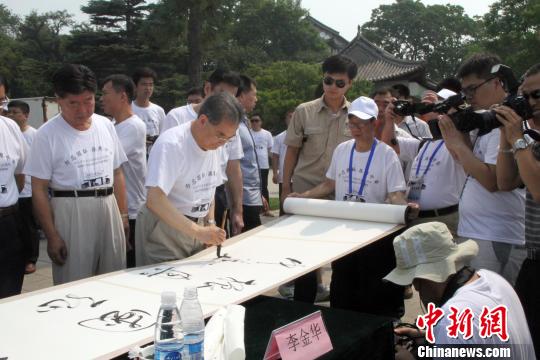 中新網(wǎng)威海7月19日電 (王嬌妮 張利國)19日上午,“紀念中日甲午戰(zhàn)爭爆發(fā)120周年海峽兩岸120位書法家走進甲午戰(zhàn)爭博物院”活動在山東威海劉公島中國甲午戰(zhàn)爭博物館舉行。