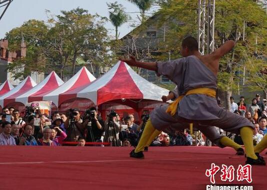 2月20日,在臺(tái)中市舉辦的第五屆海峽兩岸春節(jié)民俗廟會(huì)上,少林功夫表演臺(tái)灣觀眾如潮。李貴剛攝