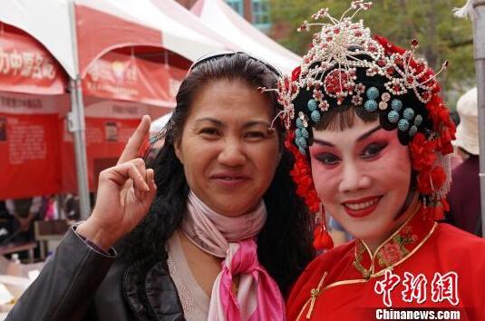 2月20日,在臺(tái)中市舉辦的第五屆海峽兩岸春節(jié)民俗廟會(huì)上,臺(tái)灣戲迷追到幕后與豫劇名角魏俊英合影留念。李貴剛攝
