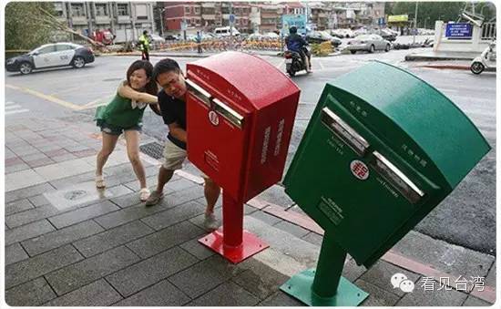 臺北市南京龍江路口附近的兩個郵筒,不敵蘇迪羅十七級暴風吹襲,一夜之間頭歪腰斜。一瞬間,海峽兩岸的人民震驚了,只能說臺風太可怕。