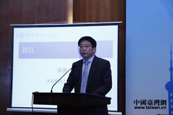 華東師范大學(xué)校長(zhǎng)陳群致辭。(中國(guó)臺(tái)灣網(wǎng) 尹賽楠 攝)