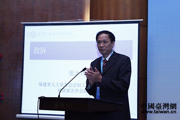 福建省人大常委會(huì)法工委主任、省法學(xué)會(huì)副會(huì)長(zhǎng)張大共致辭。(中國(guó)臺(tái)灣網(wǎng) 尹賽楠 攝)