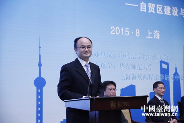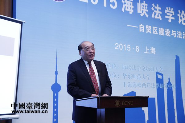 中國(guó)臺(tái)灣網(wǎng)8月19日迅。ㄓ浾 尹賽楠)19日,以“自貿(mào)區(qū)建設(shè)與法治保障”為主題的第十三屆海峽法學(xué)論壇在華東師范大學(xué)學(xué)術(shù)交流中心報(bào)告廳隆重舉行。本屆論壇由上海海峽兩岸法學(xué)研究中心承辦,來(lái)自兩岸三地的法學(xué)專家及法律實(shí)務(wù)界人士代表共210余人參加了論壇。