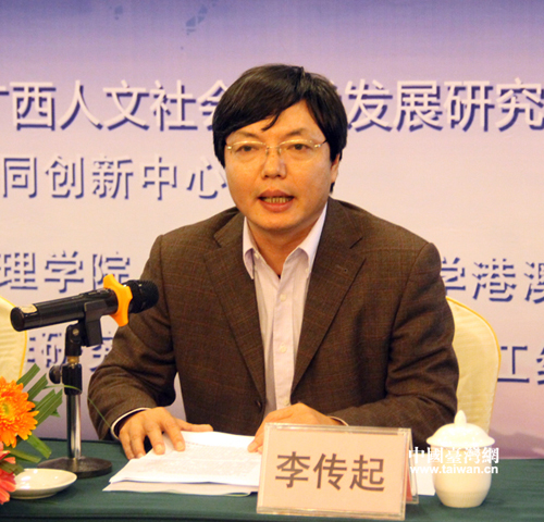 廣西師范大學(xué)副校長李傳起在開幕式上致辭。(中國臺灣網(wǎng) 李杰 攝)