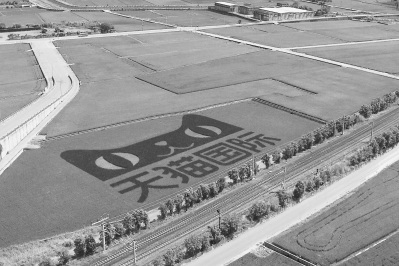 在碧綠的田野上繪出多姿多彩的“稻田畫”,該是多么神奇的事兒。近日,記者來到臺灣花蓮玉里鄉(xiāng)探訪,只見一望無際的綠油油稻浪中浮現(xiàn)出紫黑的天貓圖案和“天貓國際”(右圖下)四個大字。