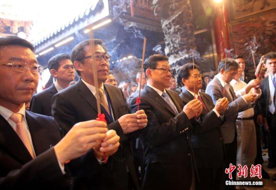 11月30日,海峽兩岸關(guān)系協(xié)會(huì)會(huì)長(zhǎng)陳德銘率海協(xié)會(huì)交流團(tuán)抵臺(tái),隨即赴臺(tái)中大甲鎮(zhèn)瀾宮參訪。中新社記者 陳小愿 攝