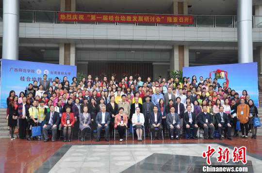 當日,來自廣西師范學院、臺灣首府大學、樹德科技大學、南臺科技大學等桂臺兩地共200余名幼兒教育專家學者、學生與會,并成立“桂臺幼教發(fā)展中心”,共同推進兩地幼兒教育事業(yè)發(fā)展。