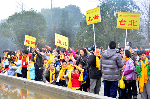 來(lái)自兩岸9個(gè)城市(上海市、昆山市、臺(tái)北市、珠海市、深圳市、長(zhǎng)沙市、株洲市、益陽(yáng)市、成都市)的親子家庭和志愿者約200人開展了為期4天的文化交流,表演了經(jīng)典話劇、快板、情景劇、手語(yǔ)舞《禮運(yùn)大同》等,誦讀了《論語(yǔ)》、《老子》,河洛漢音誦讀《千字文》等。志愿者還在現(xiàn)場(chǎng)發(fā)放新年愿望卡片,讓孩子們寫下自己的新年愿望!拔乙0职謰寢屔眢w健康”,“我要學(xué)習(xí)進(jìn)步”,“我要祝世界和平”,大家紛紛將自己美好愿望和新年祝福寫下來(lái),祝福每個(gè)家庭幸福和諧。