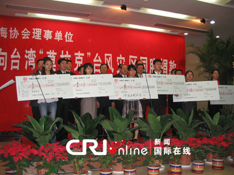 圖為海協(xié)會理事單位向臺灣臺風“莫拉克”受災地區(qū)捐款現(xiàn)場。