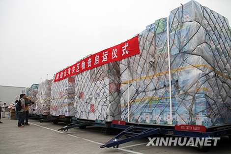 圖為由北京運往臺灣高雄的40多噸緊急救援物資。