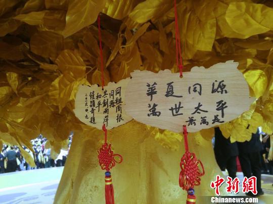 圖為拜祖大典主會(huì)場(chǎng)祈福樹下,懸掛著蕭萬長(zhǎng)、饒穎奇書寫的祈福牌。周小云 攝