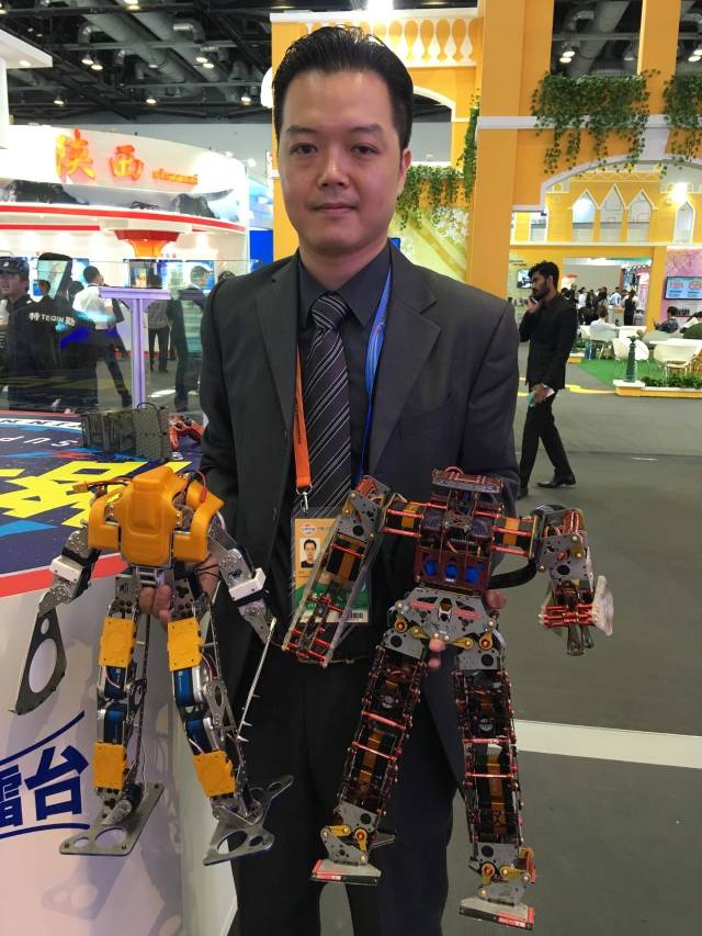 翁永陽展示其設(shè)計(jì)的格斗機(jī)械人