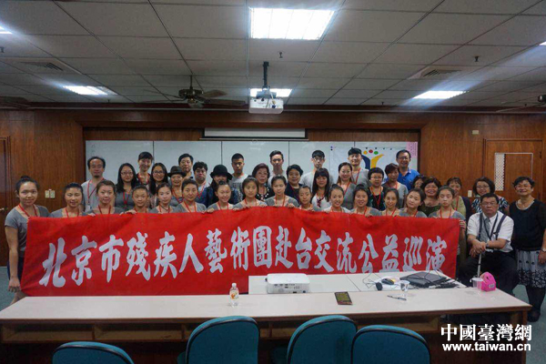 北京市殘疾人藝術(shù)團參加交流座談并合影留念。(中國臺灣網(wǎng) 雍紫薇 攝)