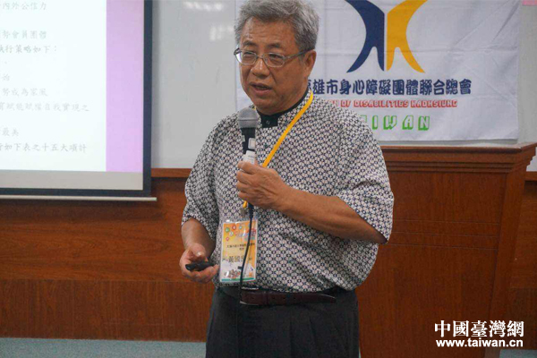 高雄市身心障礙團體聯(lián)合總會代表黃國良發(fā)表演講。(中國臺灣網(wǎng) 雍紫薇 攝)