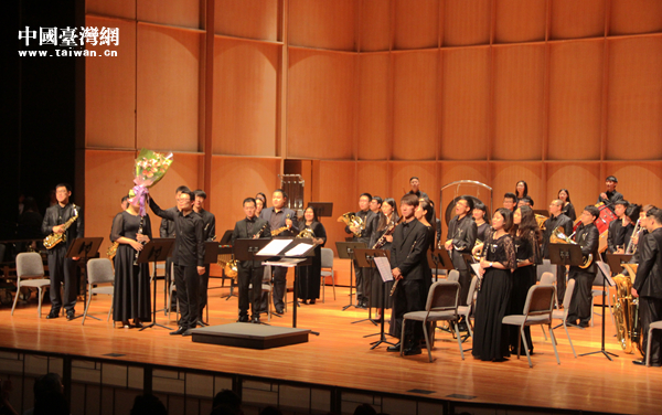 首都師范大學管樂團向臺北觀眾致意。(中國臺灣網 王思羽 攝)