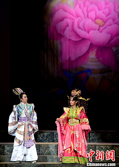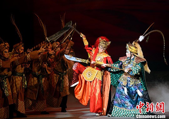 7月17晚,由臺灣明華園戲劇總團(tuán)演出的歌仔戲《貓神》在福建大劇院精彩上演。中新社記者 劉可耕 攝