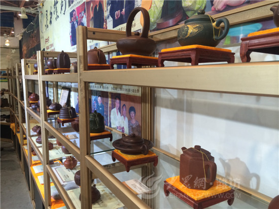 紫砂壺集陶藝、書畫、雕塑、金石藝術于一體,極具收藏價值,深受人們喜愛。在紫砂文化板塊,來自宜興的著名紫砂藝術家許中芳特地帶來了近70余件紫砂精品參展,記者注意到,展架上古樸典雅的紫砂壺引來不少紫砂愛好者的參觀咨詢。