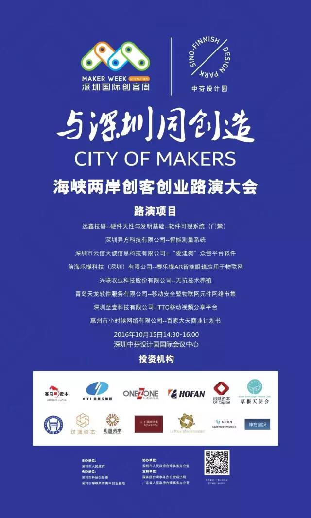 10.14 15:00-15:30第二屆深圳國際創(chuàng)客周海峽兩岸青年創(chuàng)業(yè)主題活動啟動儀式深圳中芬設計園