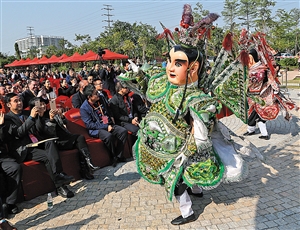 兩岸新一代創(chuàng)意設(shè)計(jì)周活動(dòng)開幕式邀請(qǐng)了臺(tái)灣藝陣新九天民俗創(chuàng)藝團(tuán)來(lái)熱場(chǎng),悠揚(yáng)的音樂(lè)、奇幻的燈光、專業(yè)的表演讓觀眾時(shí)而置身于原始森林,時(shí)而游弋驚濤駭浪,時(shí)而徜徉于花,幊,時(shí)而搏擊于遠(yuǎn)古戰(zhàn)場(chǎng)。心中的情緒隨著音樂(lè)的氣氛越散越濃,充分展示了音樂(lè)與雜技的完美結(jié)合兼具力量與柔美,給人以驚險(xiǎn)刺激的感官,為觀眾帶來(lái)嘆為觀止的藝術(shù)享受。在音樂(lè)民俗文化分享傳播的同時(shí),這種熱情能擴(kuò)散到兩岸同胞之間。